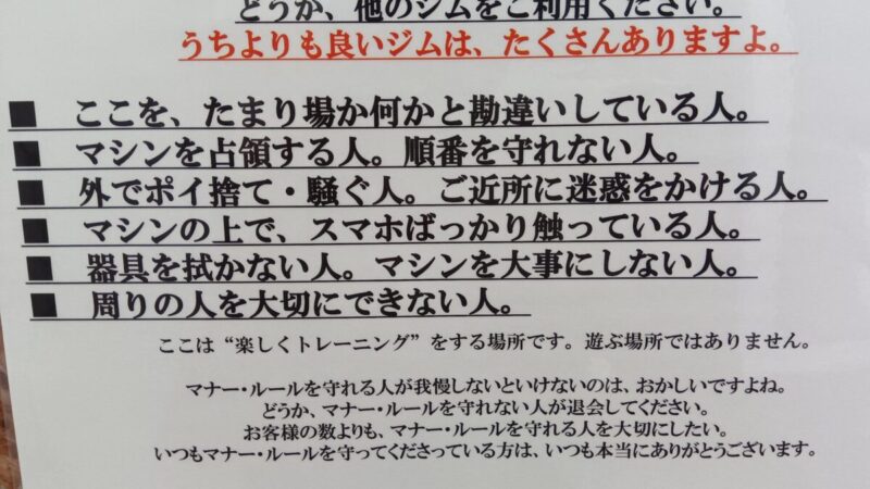 そこまで言うって感じの張り紙だけどこれくらい言わないと無人店舗だとマナーの悪い人が集まっちゃうのかも。私も気をつけよう。