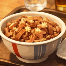 味の印象としては、旨味は牛肉っぽくて、歯ごたえは豚肉っぽい感じ。